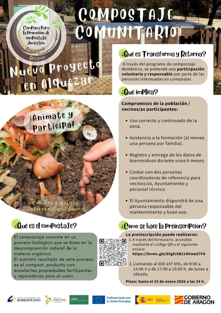 El Ayuntamiento y la Comarca animan a los habitantes de Alquézar a participar en este proyecto ya que la participación de la ciudadanía ayuda a reducir residuos, generar abono natural y fortalecer la comunidad .
