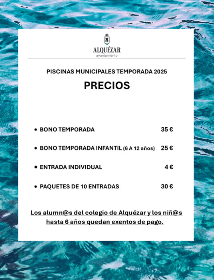 Asimismo, el Ayuntamiento informa que el alumnado del colegio de Alquézar y los niños y niñas hasta los 6 años, quedan exentos de pago.